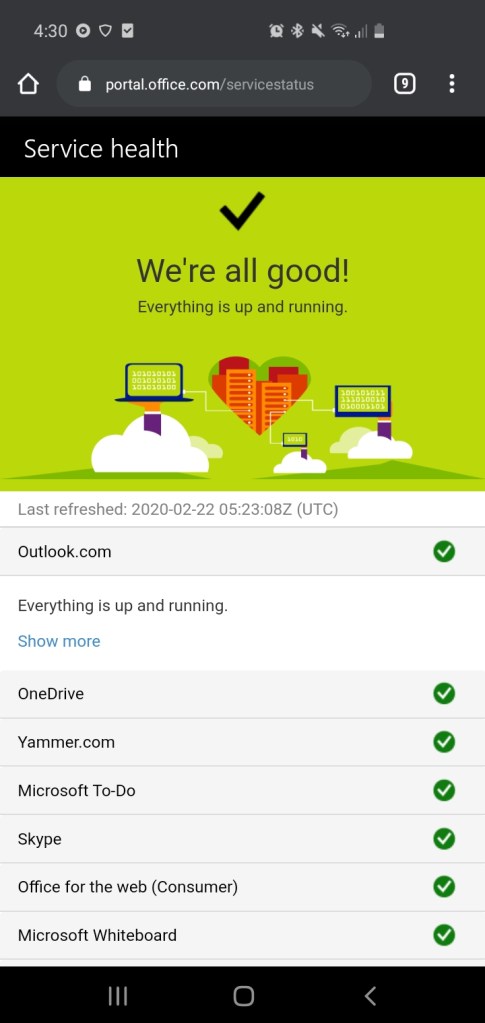SOURCE: “Service Status” https://portal.office.com/servicestatus